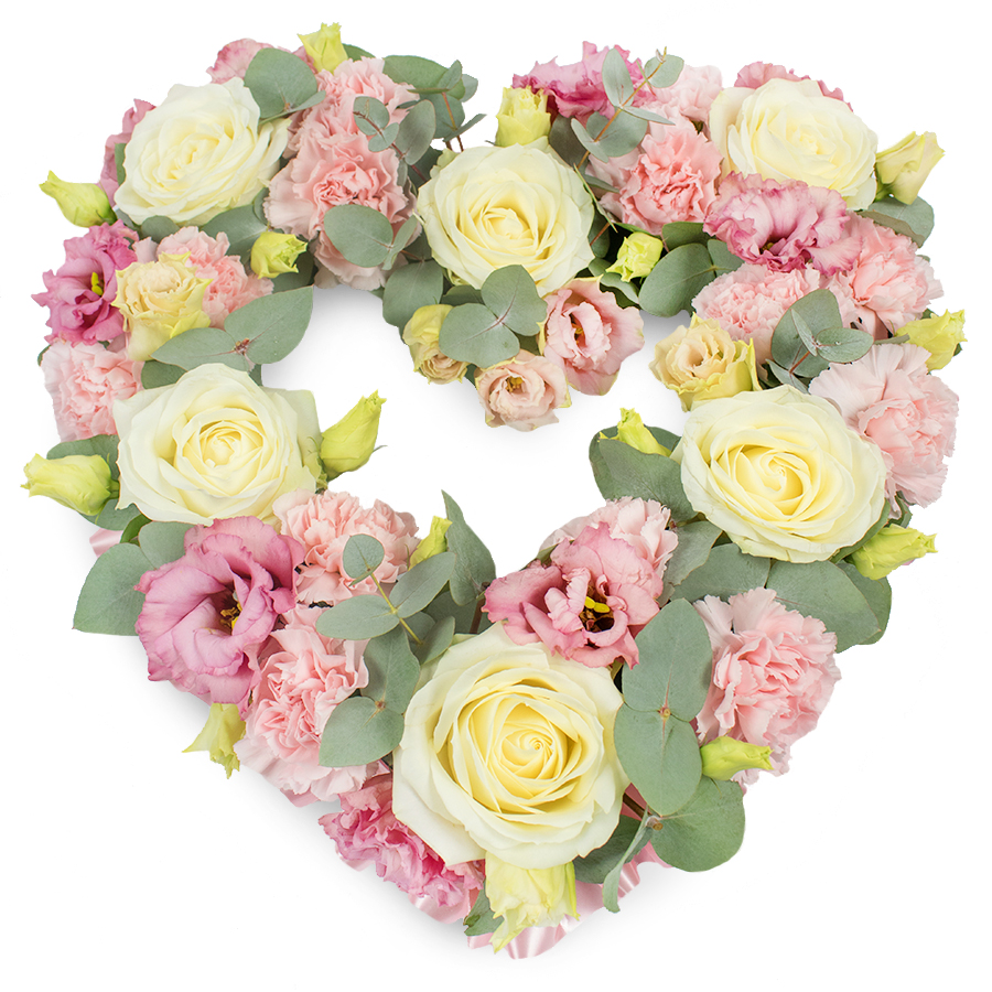 Express your heartfelt gratitude with our Exquisite Remembrance Floral Bouquet. This sophisticated arrangement showcases white roses, pink carnations, pink lisianthus, and aromatic eucalyptus, thoughtfully combined to create a unique and beautiful tribute.